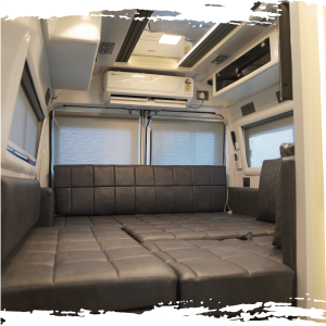 Our caravan is equipped with a convertible bed that is designed to adapt to your needs and provide you with the ultimate comfort and convenience on the road. By day, the bed area transforms into a comfortable and spacious living space, complete with plush seating, a fold-out table, and ample storage. But at night, the bed area seamlessly converts back into a cozy bedroom, complete with a plush mattress and fluffy pillows.